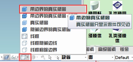23、再将显示设置成“带边界的真实感图”。