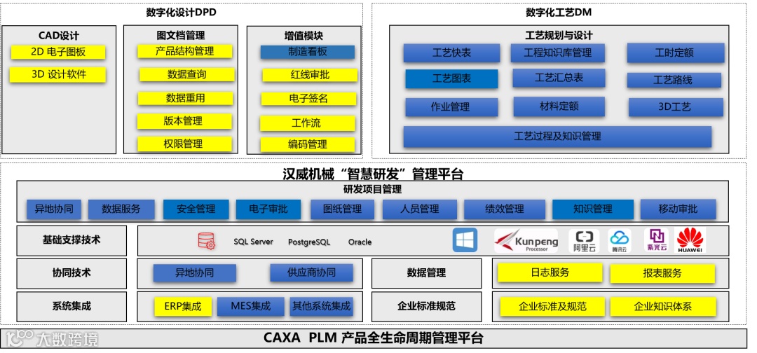 目前,汉威机械“智慧研发”技术平台,已经采用CAXA CAD电子图板全部替换了国外CAD软件,统一了公司的设计技术平台,解决了CAD数据格式和软件版本的统一的问题,大大降低了CAD应用成本。本次“智慧研发”平台旨在进行研发设计图纸的集中管理和产品数据的结构化管理,实现企业设计数据与ERP系统端的数据校验融合,真正实现统一的主数据源在不同系统间的流转贯通,协助汉威机械降低物料库存和采购成本,以PLM系统平台驱动汉威机械的业务升级转型,最终提升汉威机械在国内外卫生用品设备机械行业中的核心竞争力。