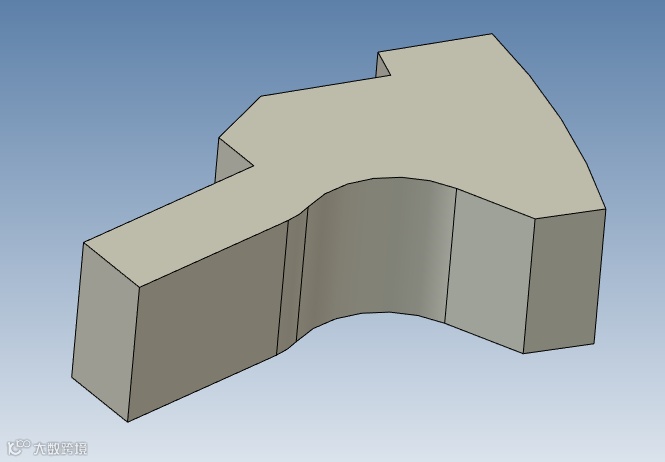 28、圆角过渡的起点处过渡半径为2mm,终点处过渡半径为8mm,完成圆角过渡后的零件如图。