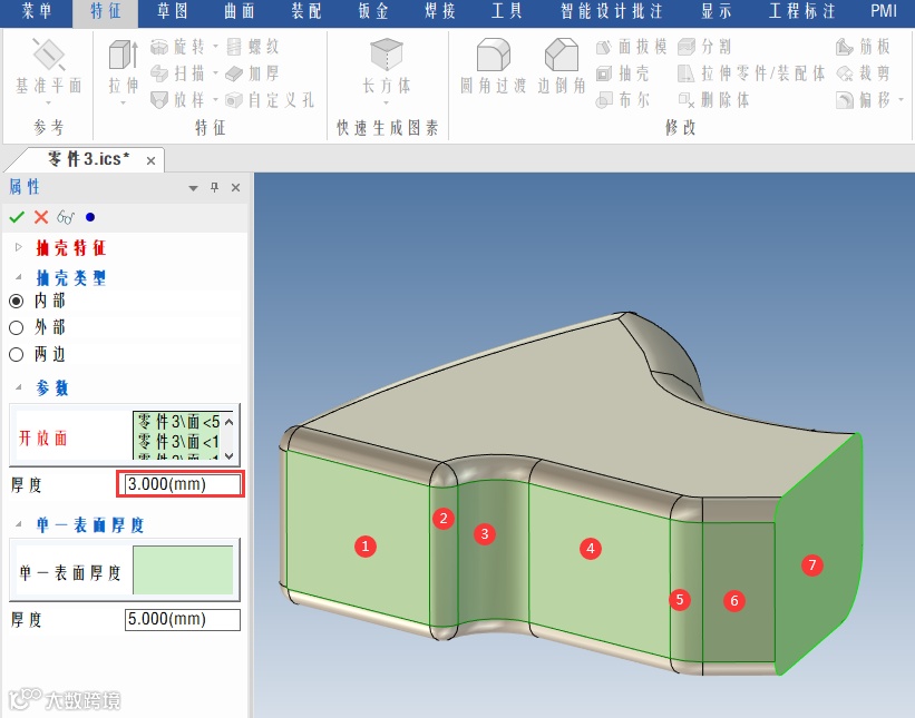 25、草图拉伸除料,步骤如前,拉伸距离为2mm,生成零件。