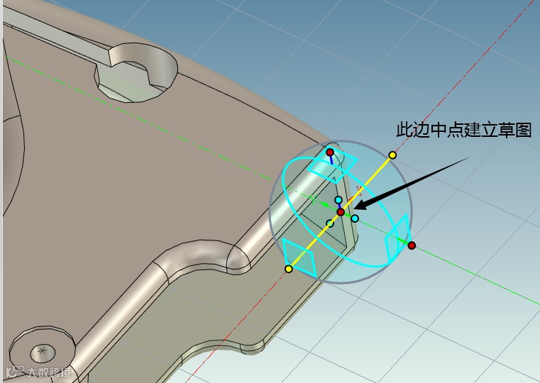 11、再如图在零件棱边角点处为起点画一段长为10mm和辅助线。