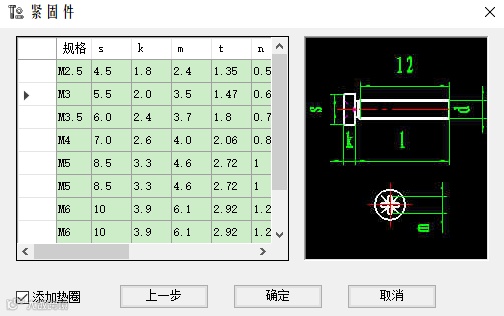 72、选择M3,长度20mm,并勾选“添加垫片”。