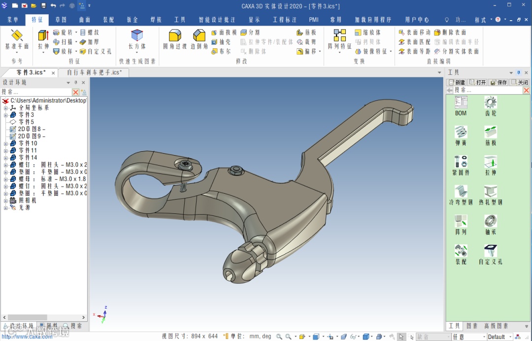 作为短距离出行的便捷交通工具,共享单车深得上班族喜爱。刹车是自行车必不可少的组成部分,关乎着整个骑行过程中的安全,设计和生产质量都至关重要。今天教程展示自行车制动把手建模教程,每一步操作讲解详细,小白也可以轻松完成3D建模。
