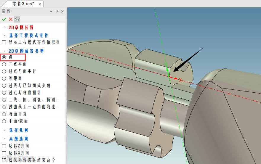 34、新建草图,再画一条线段,线段长度要超过零件的体长。