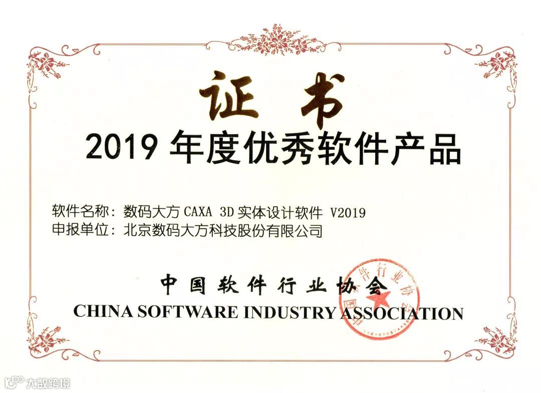 日前,数码大方的CAXA 3D实体设计软件 V2019荣获 “2019年度优秀软件产品”奖。CAXA 3D实体设计软件被列入中国软件行业协会2019年度推广优秀软件产品名单,成为政府采购、大型信息化工程招标项目的重要参考信息。