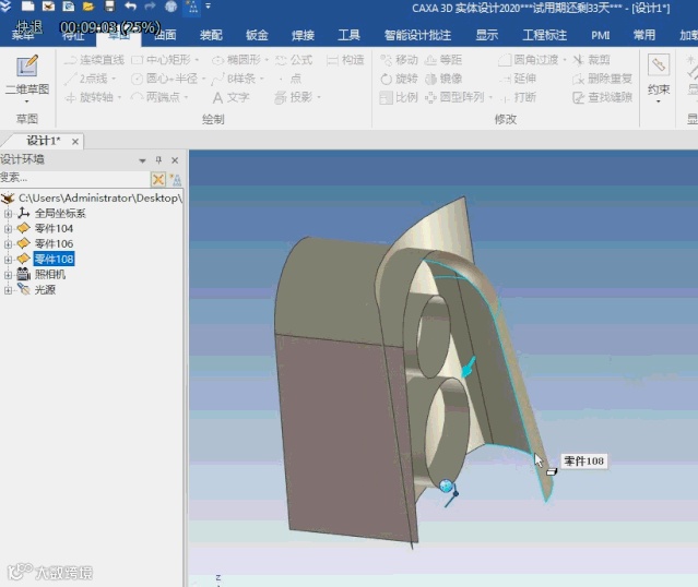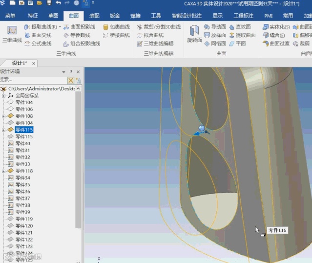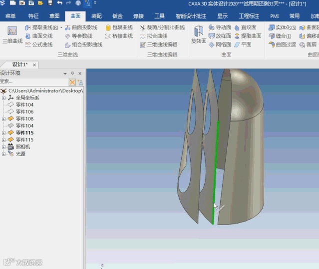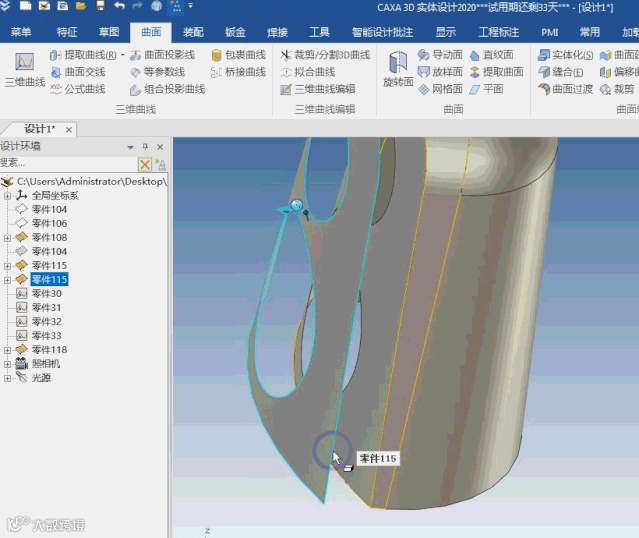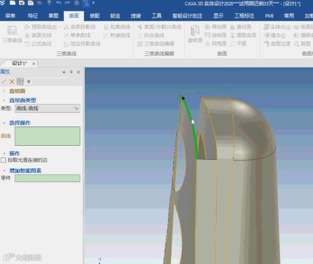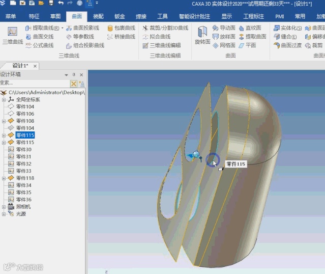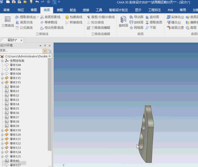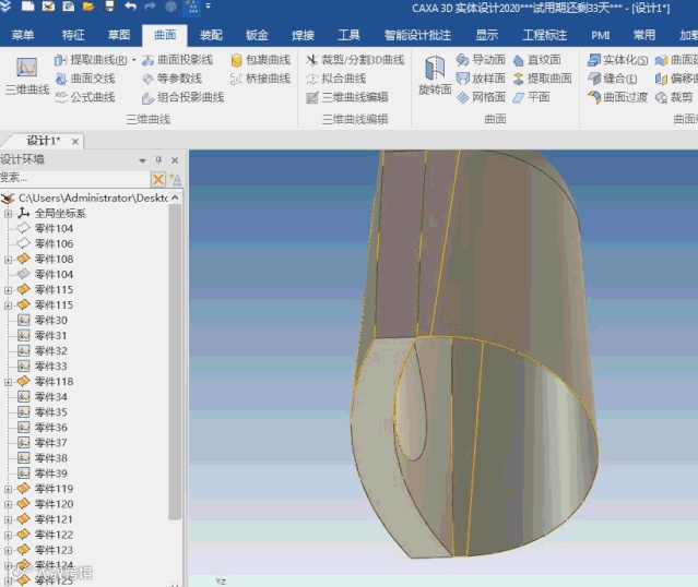 本案例主要学习曲面建模,由CAXA 3D实体设计2020完成。