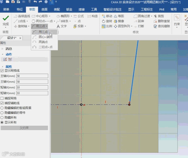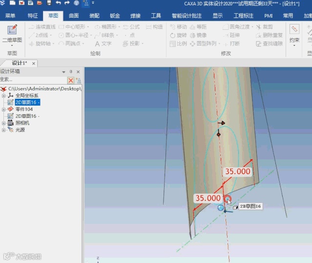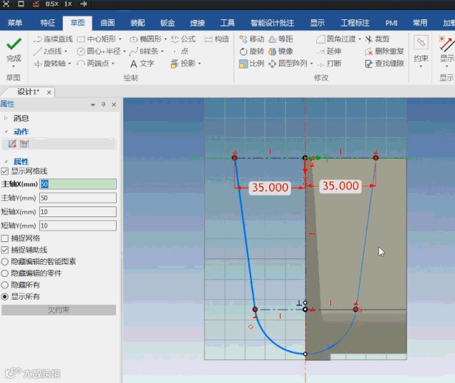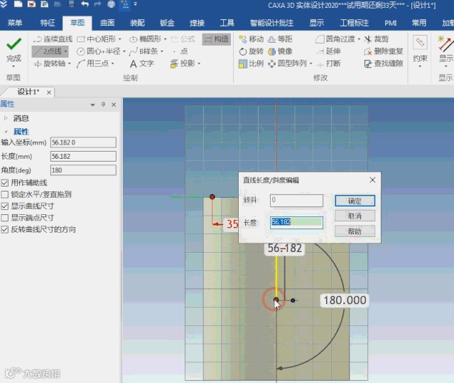 10、草图中设置旋转轴,旋转生成曲面,旋转180度
