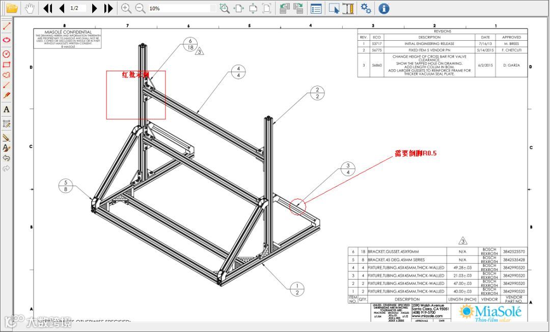 支持多图同时红批,支持用户同时打开多图比较审批的需求;针对企业常用PDF格式下发图纸和生产使用,2019版本新增了PDF红线批注。