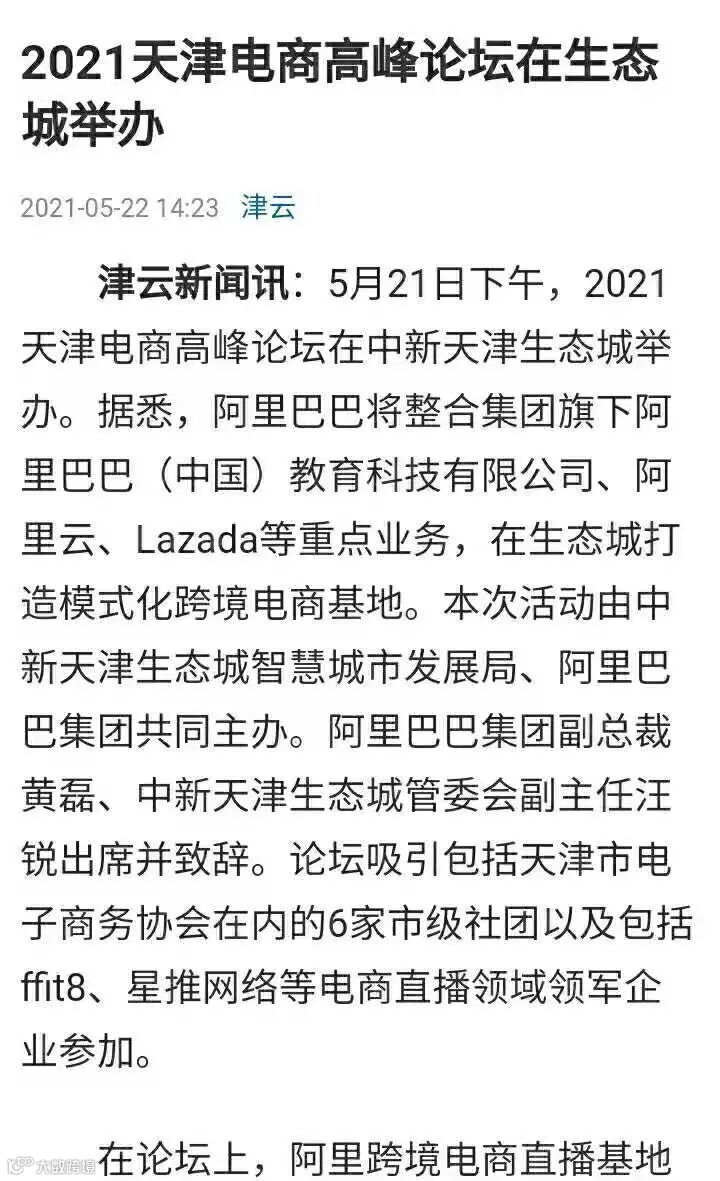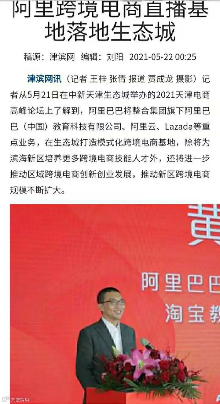 “生态城是滨海新区重要的产业集群地带,此次阿里巴巴与生态城强强联合,打造阿里天津培训中心、阿里跨境电商直播基地和产业双创基地,是阿里巴巴集团去年跟天津市签署战略框架之后的重要落地组成部分。此次合作将利用阿里在电商直播方面的优势以及生态城中新合作优势、区域政策优势,打造数字化人才培养的新高地,开展跨境电商培训,让生态城乃至天津市企业及创业者能借此平台推动天津新零售经济产业的发展,孵化实战化的人才,促进产教融合。未来基地培训围绕跨境电商与直播电商开设专业课程,预计每年将培育2000个优秀的学员。我们也会对接一些具备生产制造能力的产业资源,让这些学校学员直接将所长、所学和自己的实践结合起来。”
