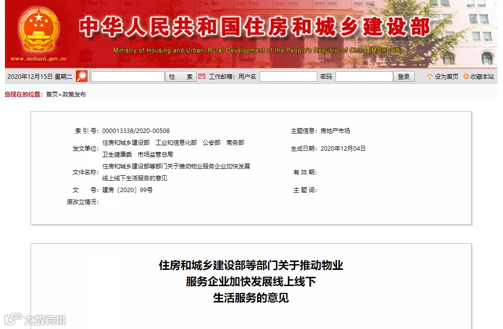 住房和城乡建设部等部门关于推动物业服务企业加快发展线上线下生活服务的意见