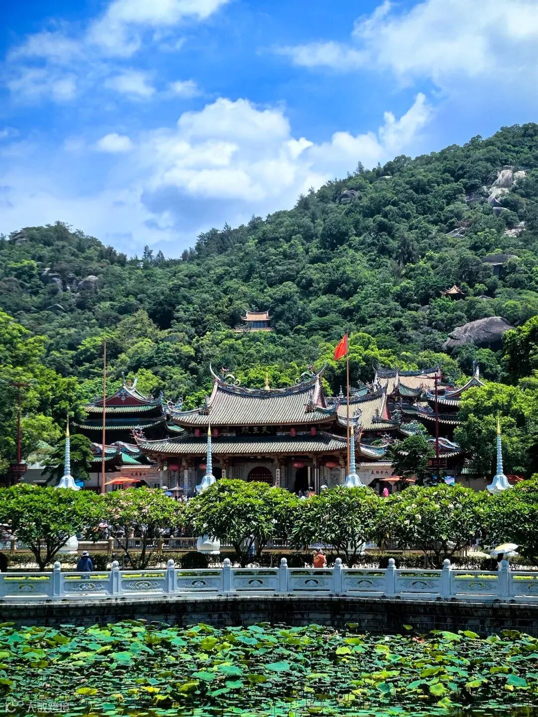 南普陀寺不仅是宗教圣地,也是一个风景秀丽的地方。寺庙周围的五老峰景色宜人,山上树木葱茏,花草繁茂。沿着山间的小径漫步,你可以欣赏到各种奇形怪状的石头和清澈的溪流。登上山顶,俯瞰整个厦门市区和大海,美景尽收眼底。在寺庙的后院,还有一个荷花池。夏天的时候,荷花盛开,粉红的花瓣在碧绿的荷叶间绽放,宛如一幅美丽的画卷。你可以坐在池边的亭子里,欣赏着荷花的美丽,感受着大自然的宁静与美好。