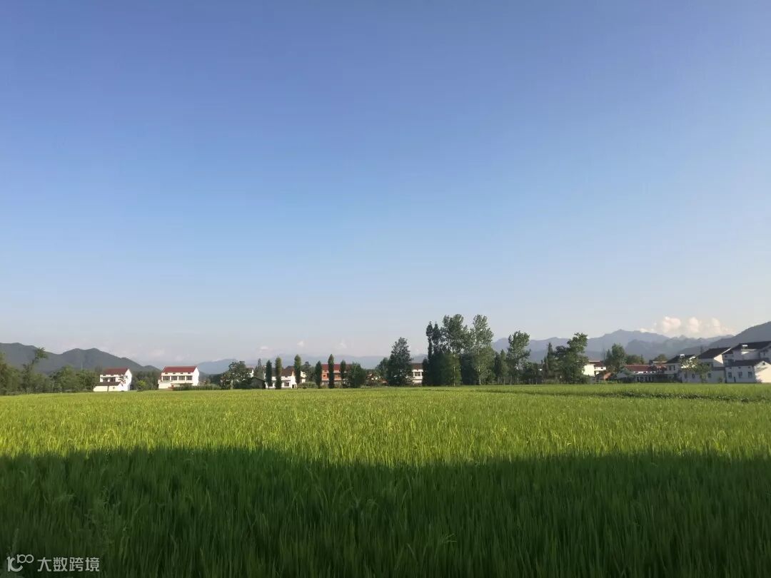 作品说明:盛夏的稻田,香气扑面,远山绿树白墙,诗意田园!