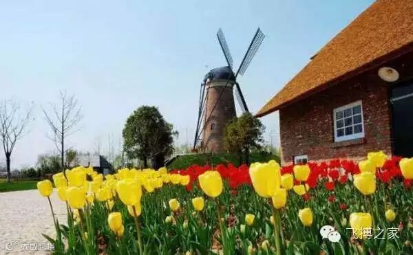 绿博园:这里的郁金香在荷兰风情园里,不同颜色的郁金香开在水边和风车边,充满了异域风