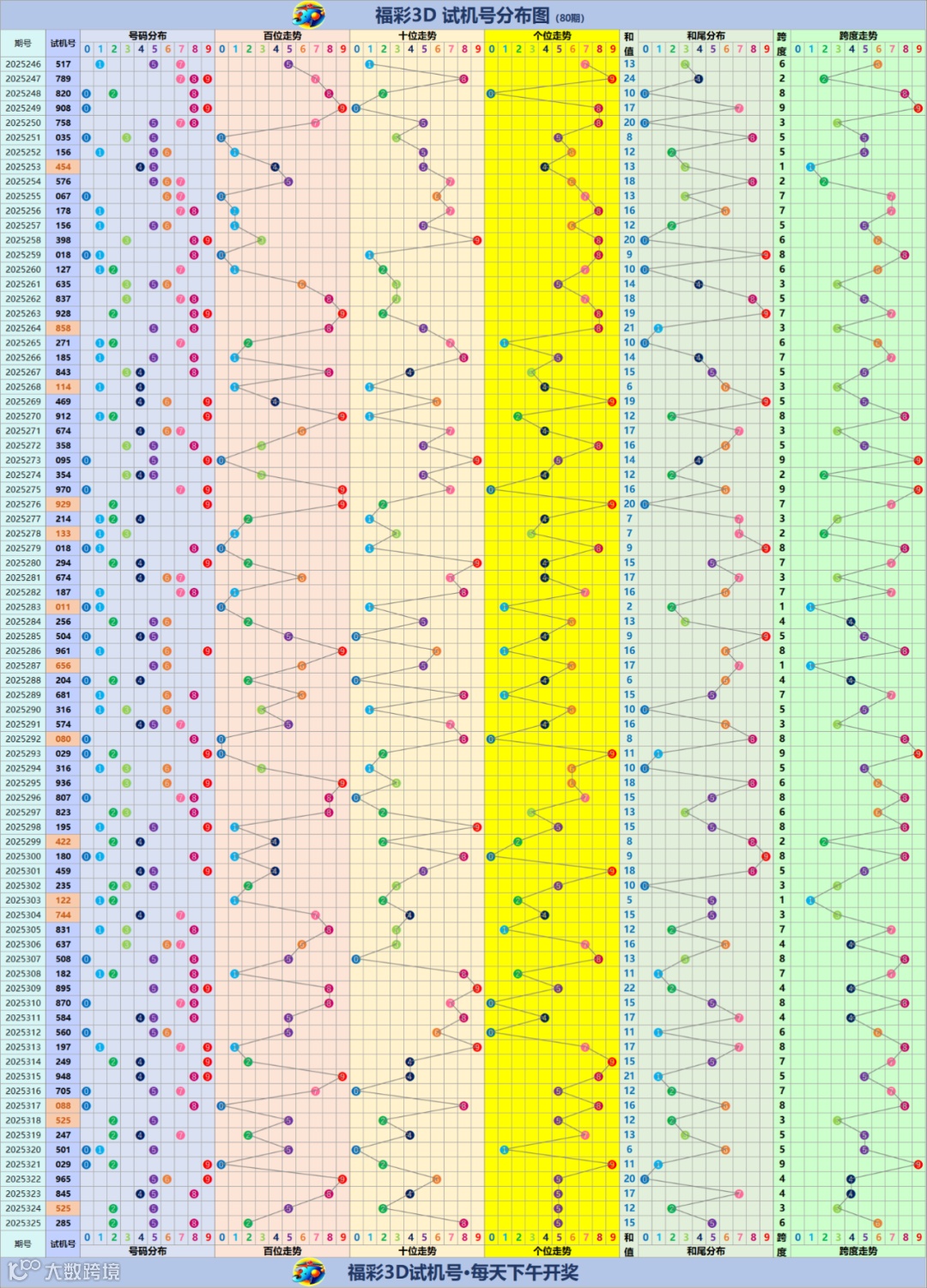 福彩3D试机号走势分布图(更新至2025325期)