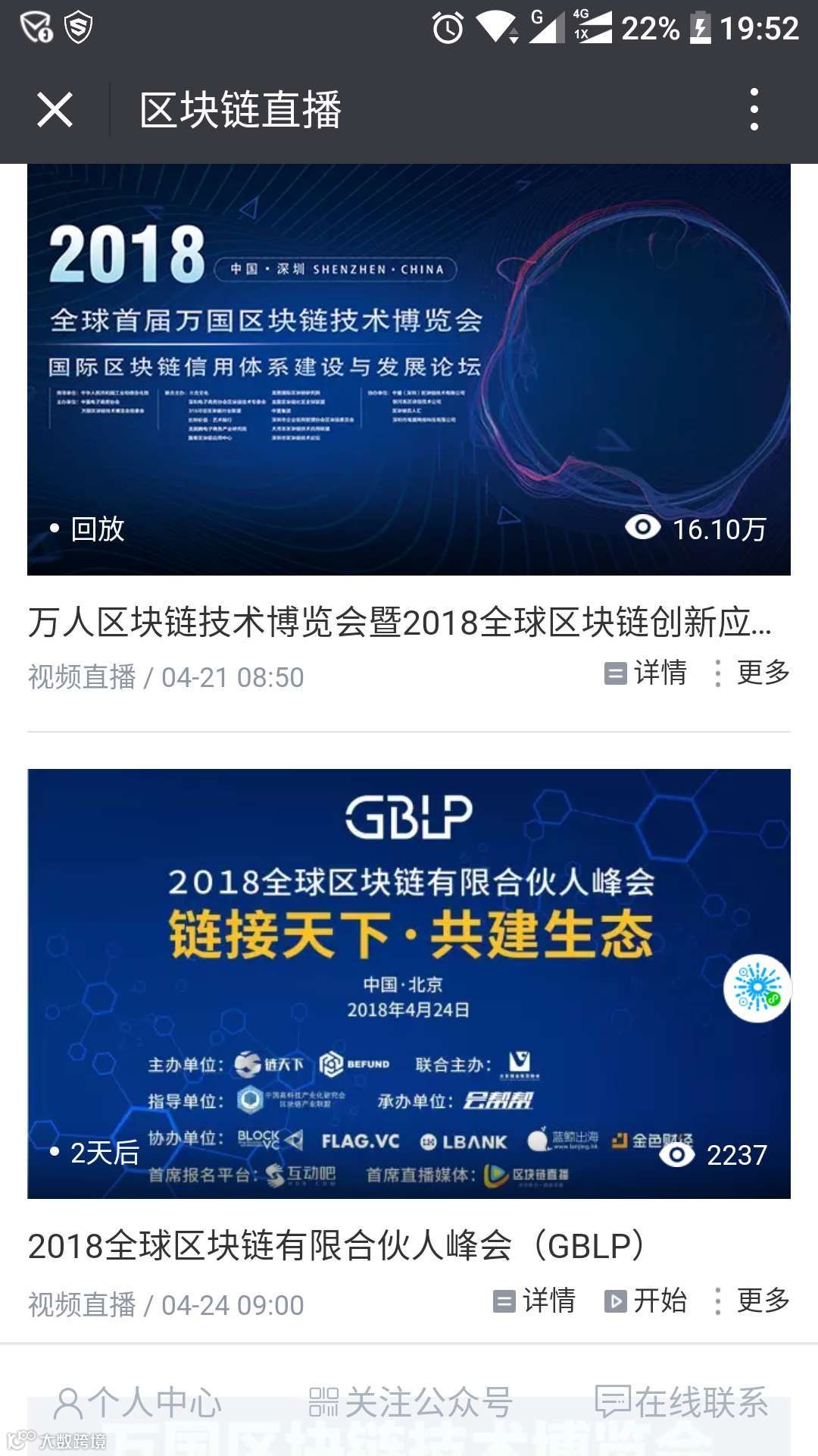 没有参加或观看这两天深圳万国区块链博览会和中国创新创业领袖峰会暨2018区块链技术与创新高峰论坛朋友们直播已结束可以随时观看了精彩不容错过。观看流程进入区块链直播公众号-点击直播间就可以回看已结束的直播了,还可以观看直播预告哦。