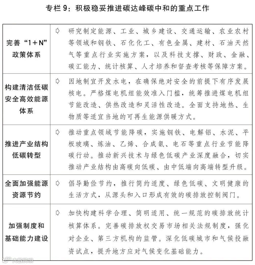 完善碳达峰碳中和“1+N”政策体系,实施“碳达峰十大行动”,坚持“全国一盘棋”。