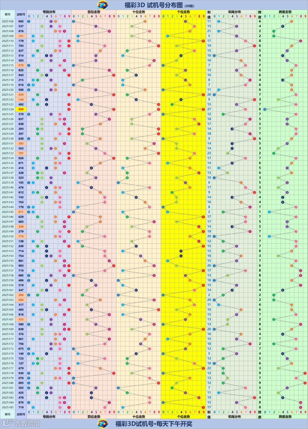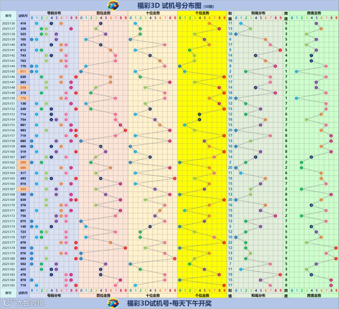 福彩3D试机号走势分布图(更新至2025185期)