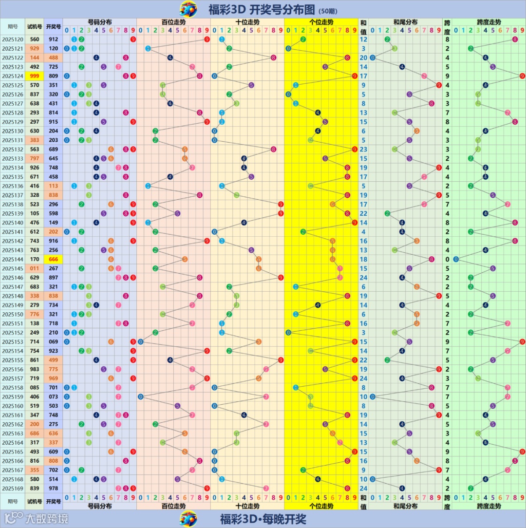 福彩3D走势分布图(更新至2025169期)