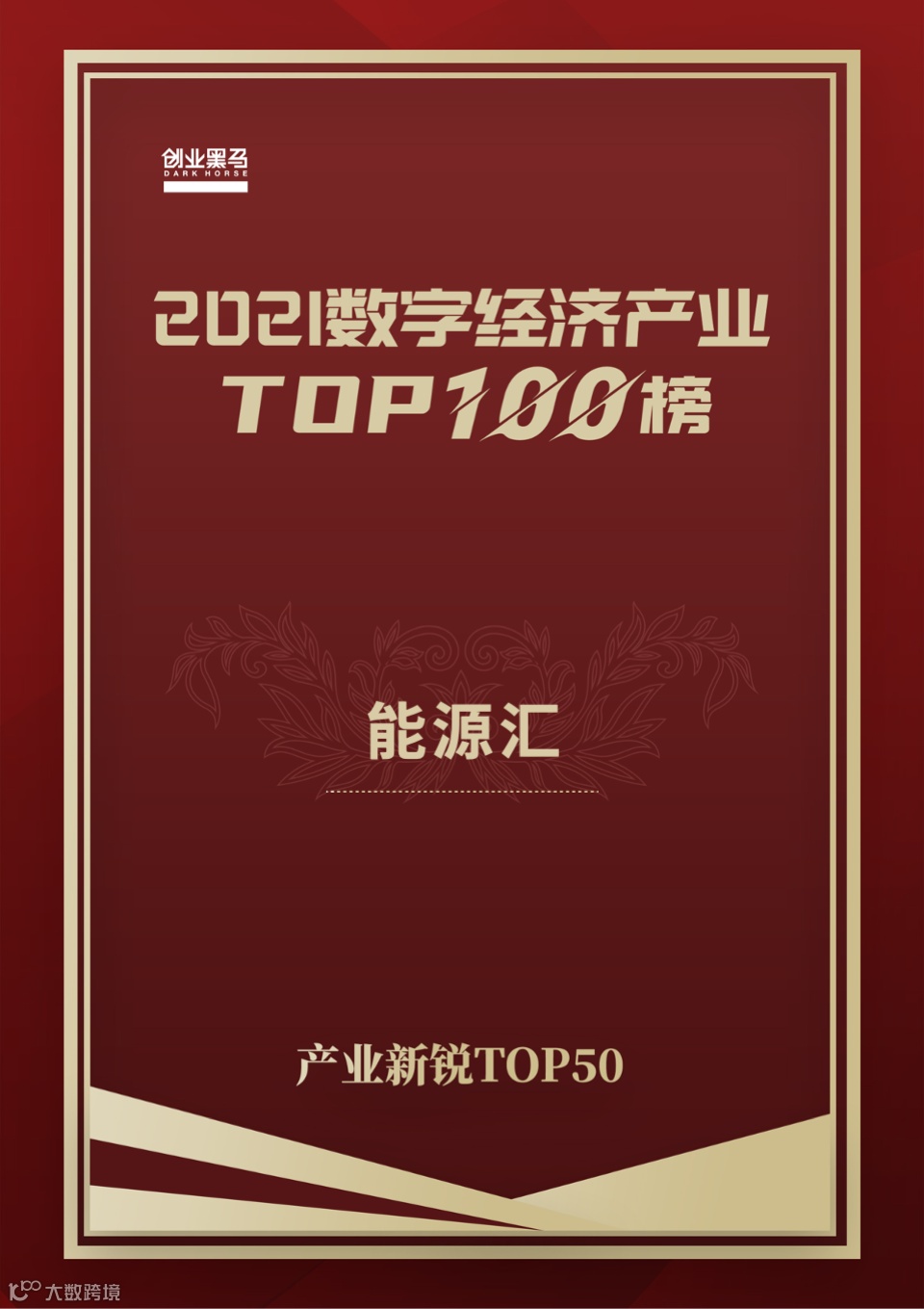 12月22日,创业黑马联合重庆市涪陵区人民政府、《上海证券报》、《证券日报》、投资界、融资中国等权威媒体,与63家数字经济投资机构投资人及行业专家,共同发布“2021数字经济产业TOP100”榜单,能源汇成功入选产业新锐TOP50。
