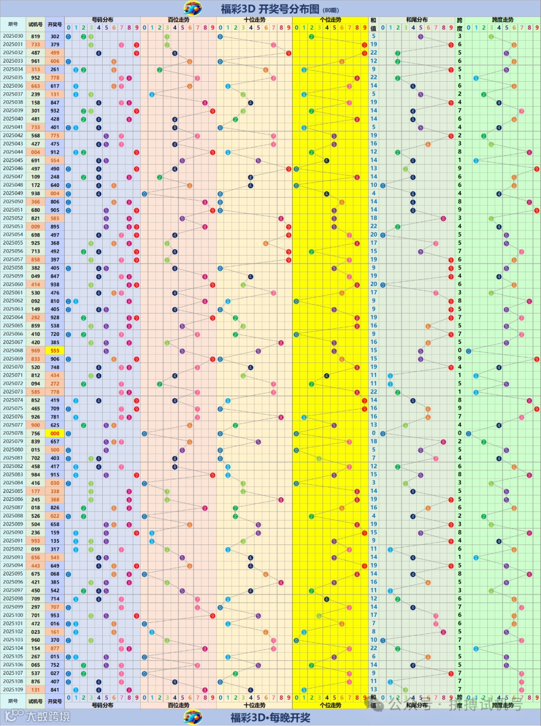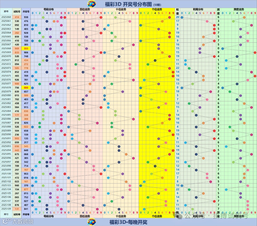 福彩3D走势分布图(更新至2025109期)