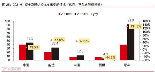 资本支出:顺丰资本开支显著增长,中通全年指引略有下调