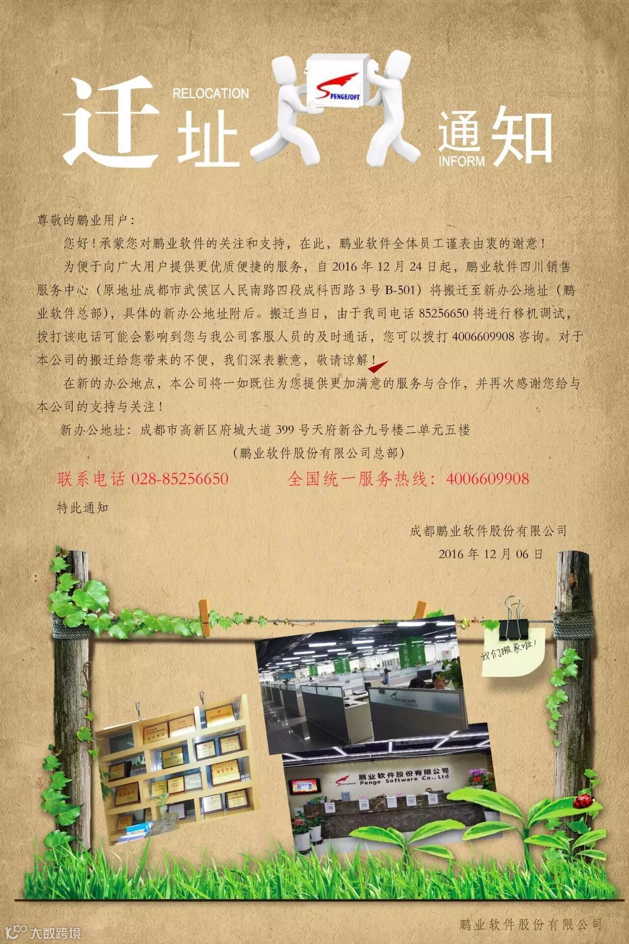 【乔迁公告】鹏业软件四川销售服务中心24号搬家啦!