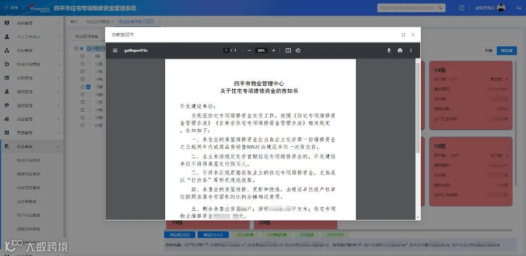 鹏业对系统的调整满足了当地政策需求,从实际出发保障了政策的贯彻落实,对四平市维修资金的缴存保驾护航,维护了广大业主的切身利益。
