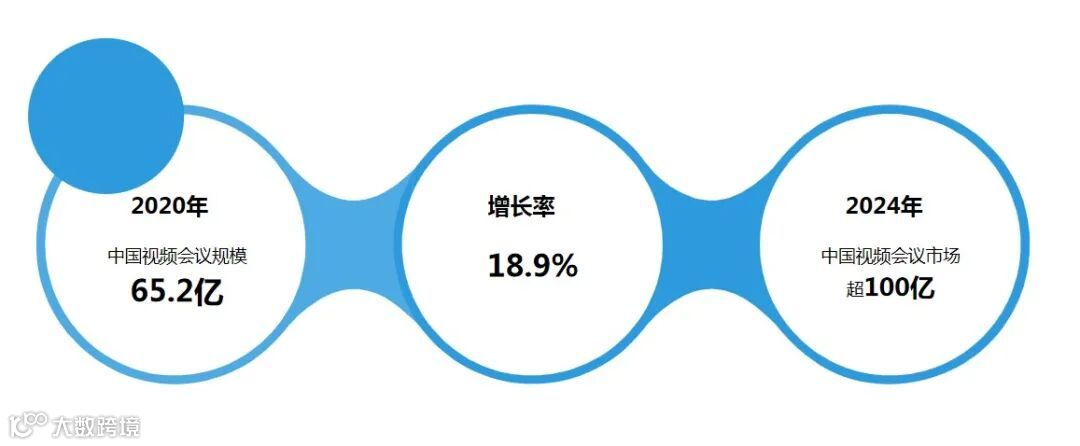 疫情防控的常态化催生了视频会议市场的高速增长。据IDC最新发布的《2020年IDC中国视频会议与协作市场跟踪报告》,2020全年,中国视频会议市场规模达到9.5亿美元(约合65.2亿元人民币),市场规模较同比上涨18.9%;2024年,中国视频会议市场规模将超过100亿元人民币,3D+VR会议市场占比将超40%。