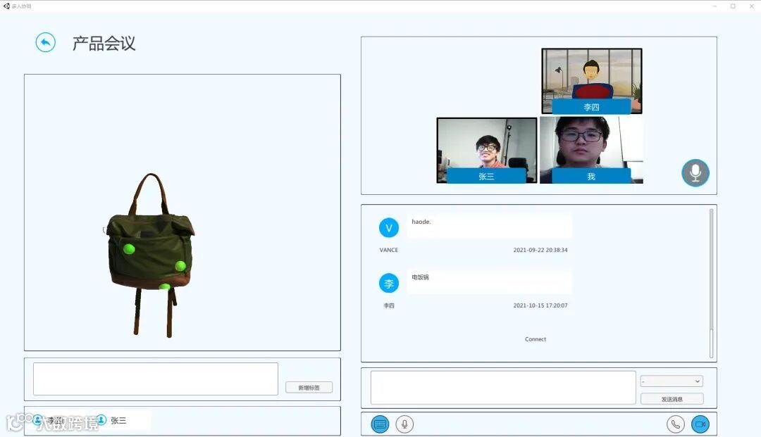 🔹 创新性将实物扫描建模与设计与生产过程中的产品模型预览与交互植入会议系统;