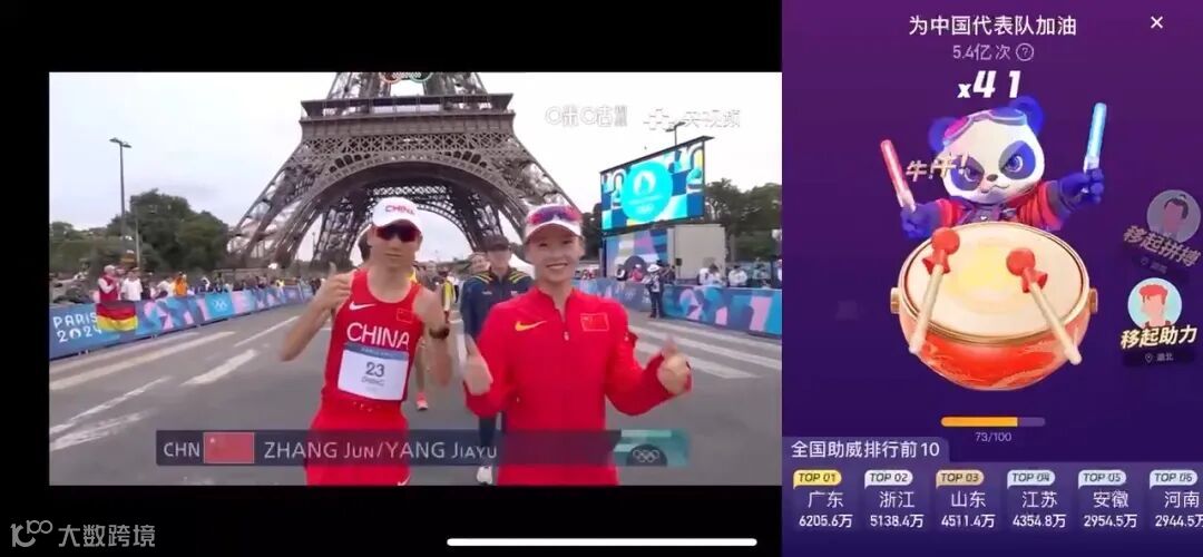 在直播期间,当中国队和中国球员亮相时,系统能够精确地识别出相关人员和项目,并自动呈现助威画面。