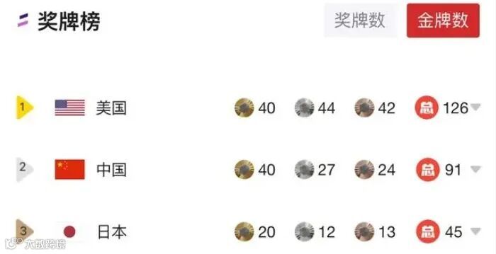 金牌榜上,中国与美国并列世界第一位,证明了中国体育不断向前的进取精神。