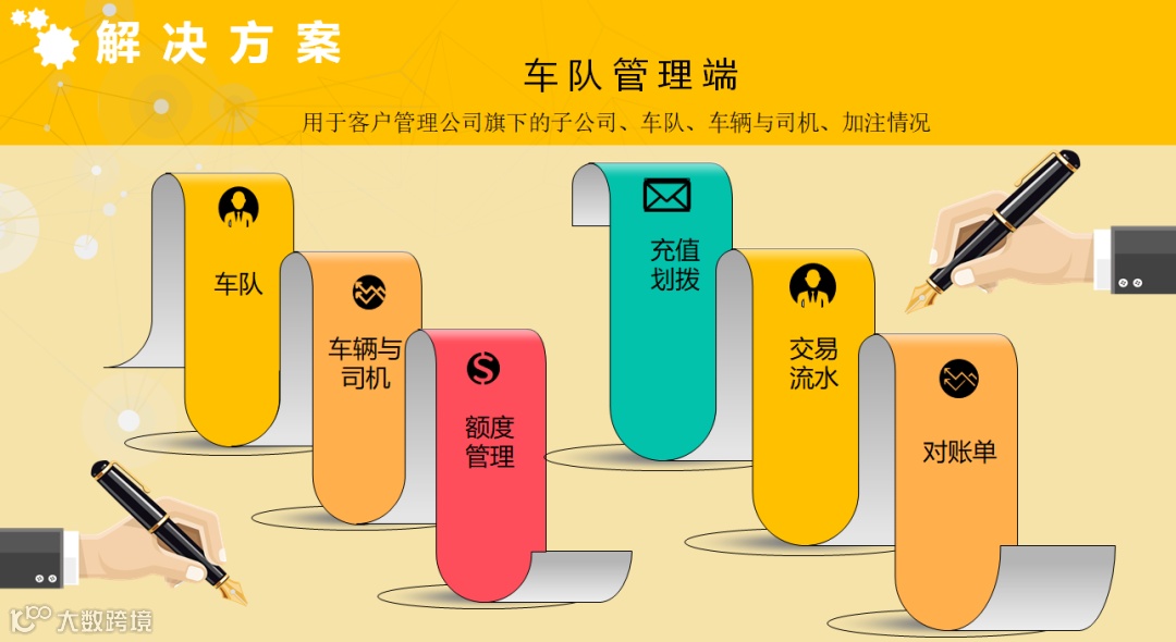 用于客户管理公司旗下的子公司、车队、车辆与司机、加注情况。包括额度管理、充值划拨、交易流水、财务对账、智能报表等内容。