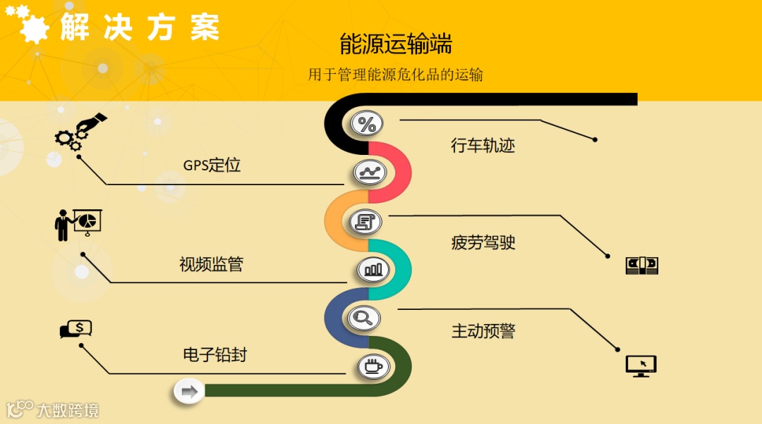用于管理能源危化品的运输。包括GPS定位、视频监管、电子铅封、行车轨迹、疲劳驾驶、主动预警等运输安全管理。