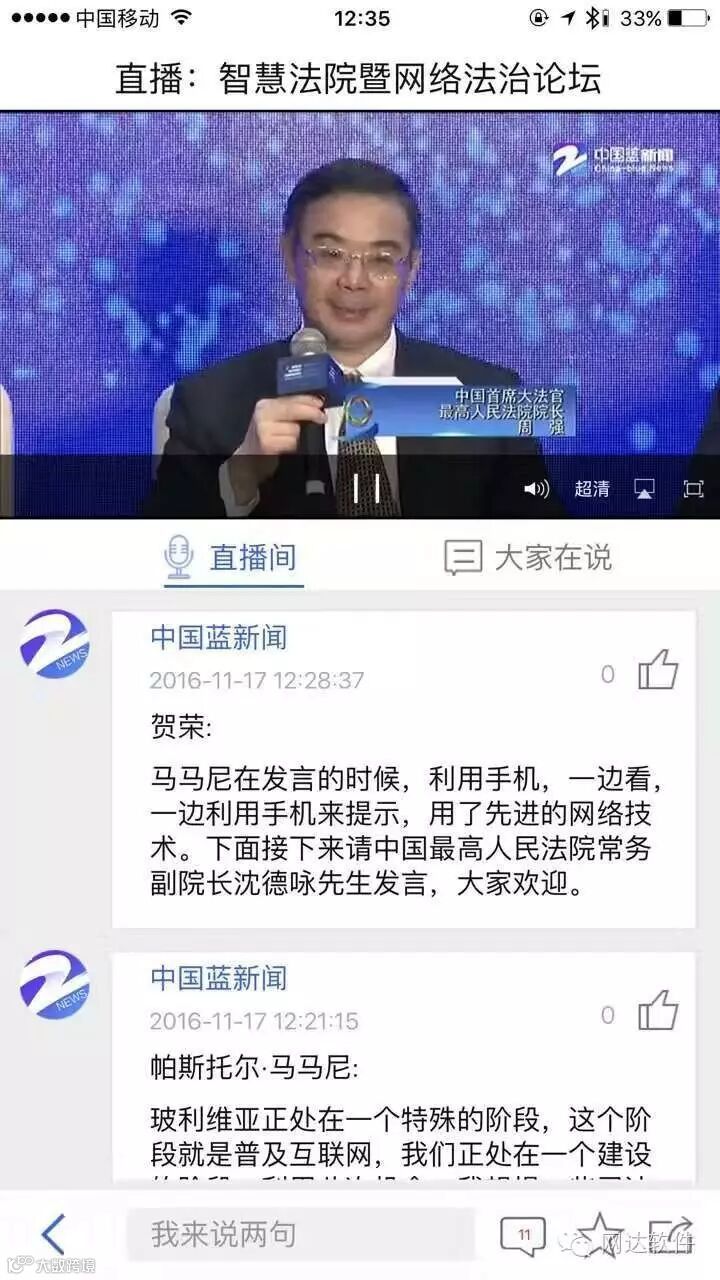 中国蓝新闻客户端是由浙江广电集团旗下的新蓝网公司投资建设的浙江广电集团第一新闻客户端,网达软件承担了该平台的开发和建设工作。 2016年世界互联网大会于11月16日至18日在乌镇隆重召开,中国蓝新闻进行了稳定、实时的直播报道。 其客户端的新闻直播间作为特色功能实时向用户播报最新、最准确的新闻直播内容,得到用户的积极反响。