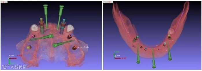 不同植体系列型号其骨水平方式也不同,在设计时要注意按种植体设计进行放置,并且结合穿龈高度、修复体对应所需要的基台角度,确保上部修复能合理、良好的完成。也可以根据种植位点进行后期修复的规划设计,用数字化设计的种植计划可预见修复效果,也能够进行良好的患者沟通。每个种植手术方案,都应该采集、考量尽可能多的患者信息,结合医、患、技做出患者满意、医技力所能及的方案。