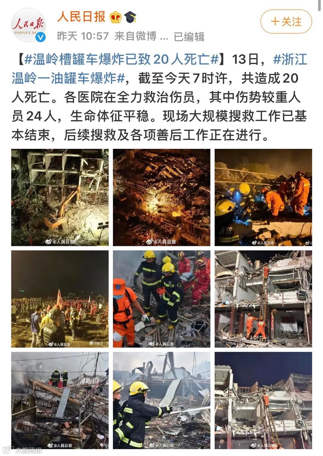 同时浙江温岭的槽罐车爆炸事故