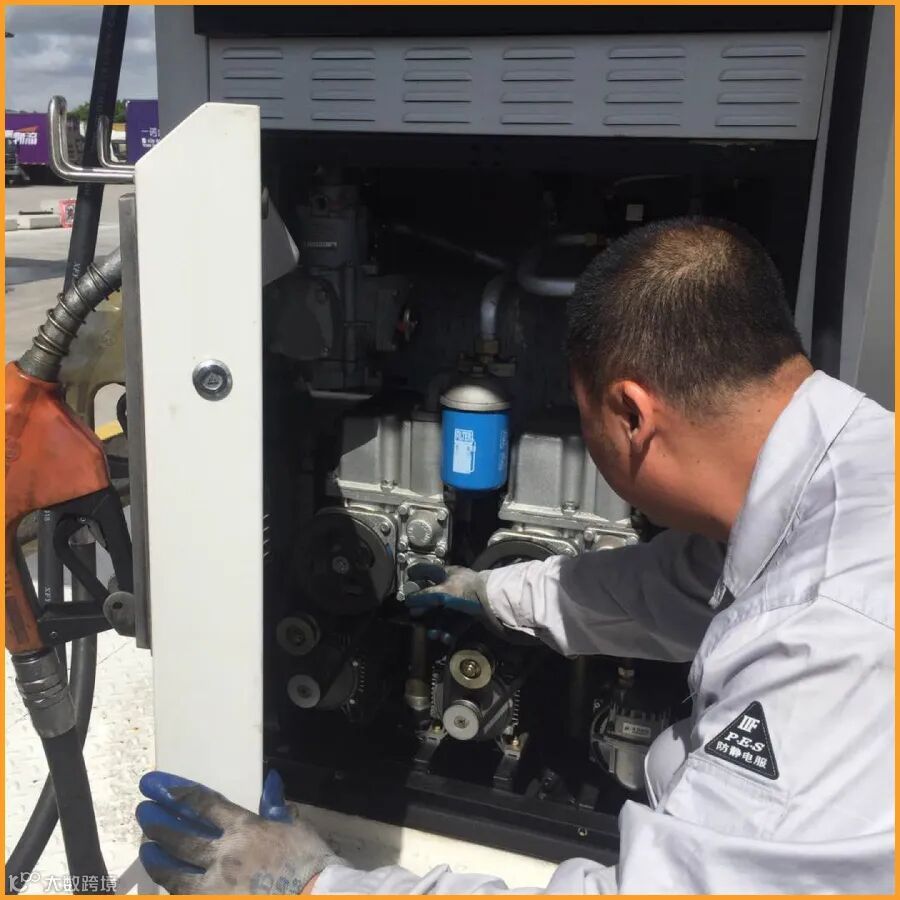 站 正在检查加油机内部情况