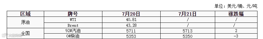 疫苗研制进展带来积极预期,同时市场对于经济复苏的信心增强,国际油价大幅上涨。WTI 08合约41.96涨1.15美元/桶;布伦特09合约44.32涨1.04美元/桶。中国SC原油期货主力2009涨1.1至298元/桶;截至7月21日原油综合变化率1.51%,预计对应上调幅度35元/吨,新一轮成品油调价窗口将于7月24日24时开启。(短期利好)