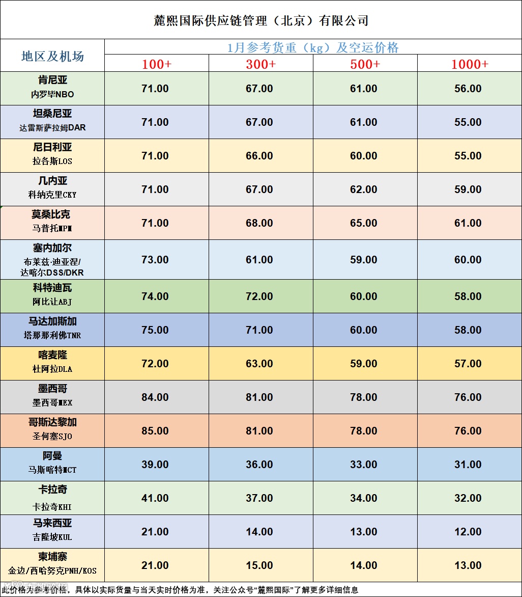 麓熙国际1月份空运价格新鲜出炉~~~ 麓熙国际