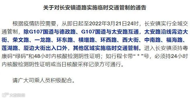 而昨日,东莞茶山、长安、塘厦、道滘、麻涌、凤岗等地也发布全域交通管制通告。