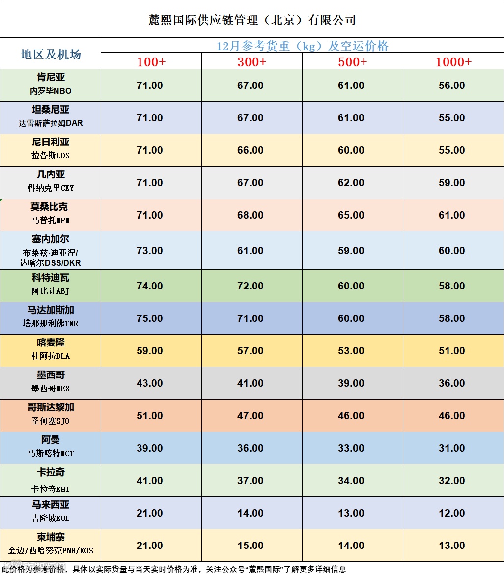 麓熙国际12月空运报价已出~~~ 麓熙国际