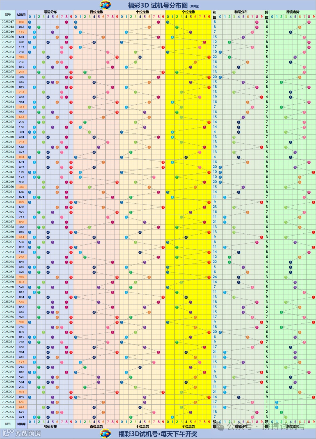 福彩3D试机号走势分布图(更新至2025096期)
