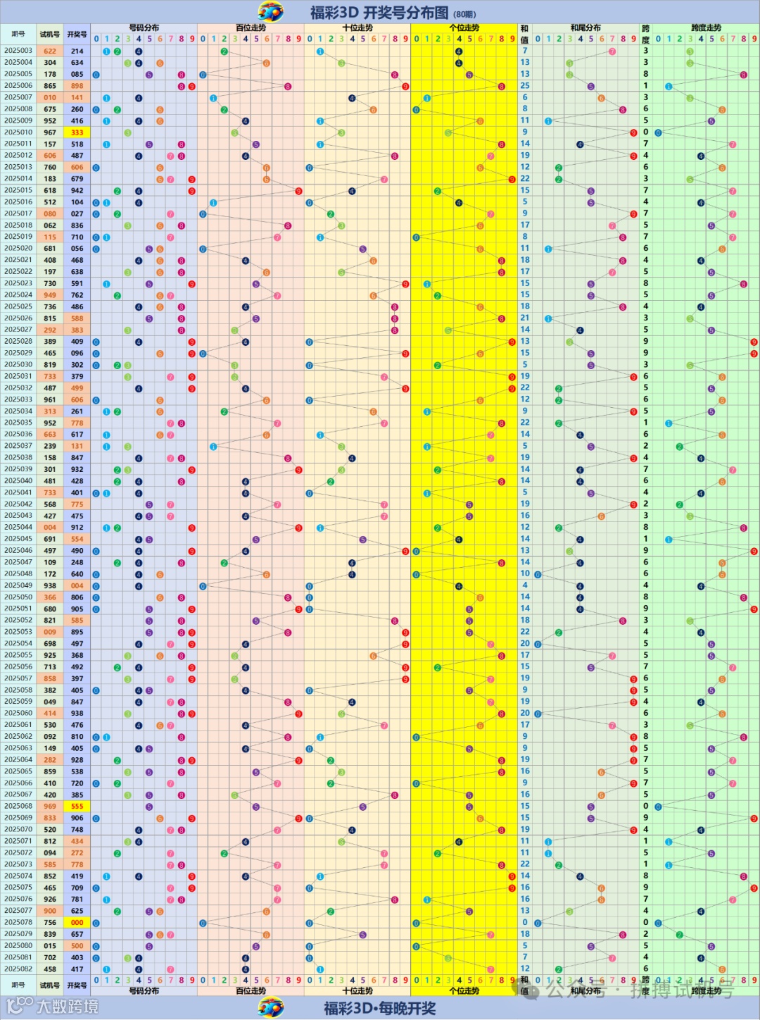 福彩3D走势分布图(更新至2025082期)