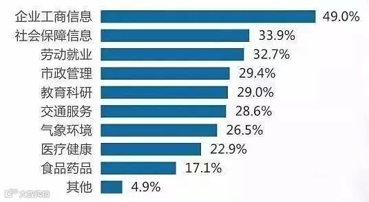 根据大数据分析结果,将近一半的企业将大数据运用在企业工商信息管理方面,此外,在社会保障、劳动就业、市政管理、教育科研方面分别占据33.9%,32.7%,29.4%,29%。整体来看,大数据的应用范围广泛。