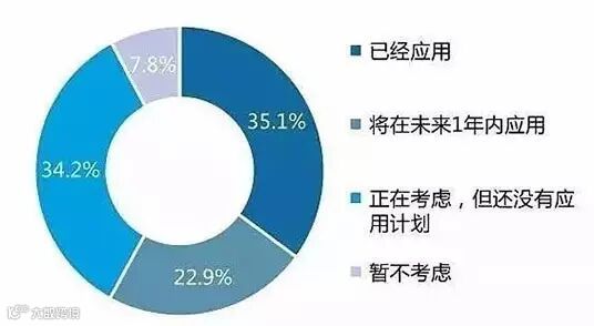 大数据分析对企业的发展越来越重要, 35.1%以上的企业已经开始在企业内部应用到了大数据;34.2%的企业正在考虑应用大数据,22.9%的企业在未来1年有应用大数据的计划,仅仅有7.8%的企业暂不考虑应用大数据。