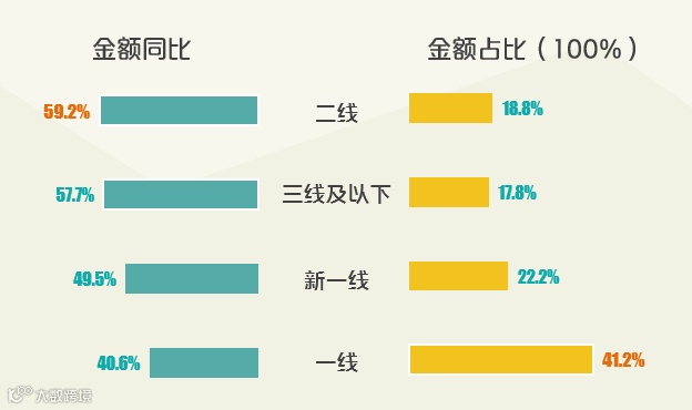 2017年二三四线城市增速达59%,增幅显著高于一线及新一线,且增速优势不断扩大;