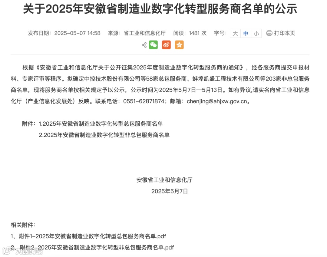 近日,安徽省经济和信息化厅正式启动了年度服务商征集工作。经过严格的自主申报、地市初审、专家评审等遴选程序,云轨科技凭借卓越的技术实力和丰富的服务经验,成功入选2025年度安徽省制造业数字化转型服务商名录。值得一提的是,此次入选是继云轨科技2023年度、2024年度被评定为安徽省制造业数字化转型服务商之后的第三次入选,这份殊荣不仅体现了我司在工业数字化领域的创新能力和服务水准,更是对公司持续推动产业数字化变革所作贡献的高度认可。