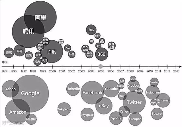 到了今天,不要说中国人只有 BAT(百度、阿里、腾讯)和TMD(头条、美团、滴滴)。美国一样是Apple\Google\Facebook\Amazon的天下,全球步伐似乎保持一致,人们使用的互联网服务已经越来越“中心化”了,特别是从PC端到移动互联网之后,这种趋势还在加剧。