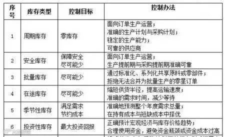 事实上,虽然不是每个企业都会存在所有七种类型的库存,但大部分企业会有其中的数种。同时由于保有库存的目的不同,企业对其进行控制的目标与方法也不尽相同。无论如何,极少有人会将正在由20美元一桶向70美元一桶狂飙的石油库存与那些过期变质的食品库存同样看待。下表是不同类型库存的管理目标与可以采取的控制办法。