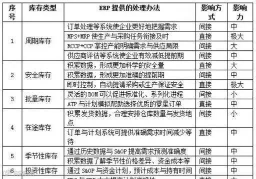 因此我们的结论是,对于一个库存类型丰富的企业而言,零库存并不是企业的唯一目的,也不可能是实施ERP后的必然结果。毫无疑问,实施并运行ERP能够通过各种方式帮助企业库存合理化,该储备的储备,该压缩的压缩,该生产的生产,该锁定的锁定,并因此而给企业带来显著的改善,但并不会将企业的各种库存都降为零。